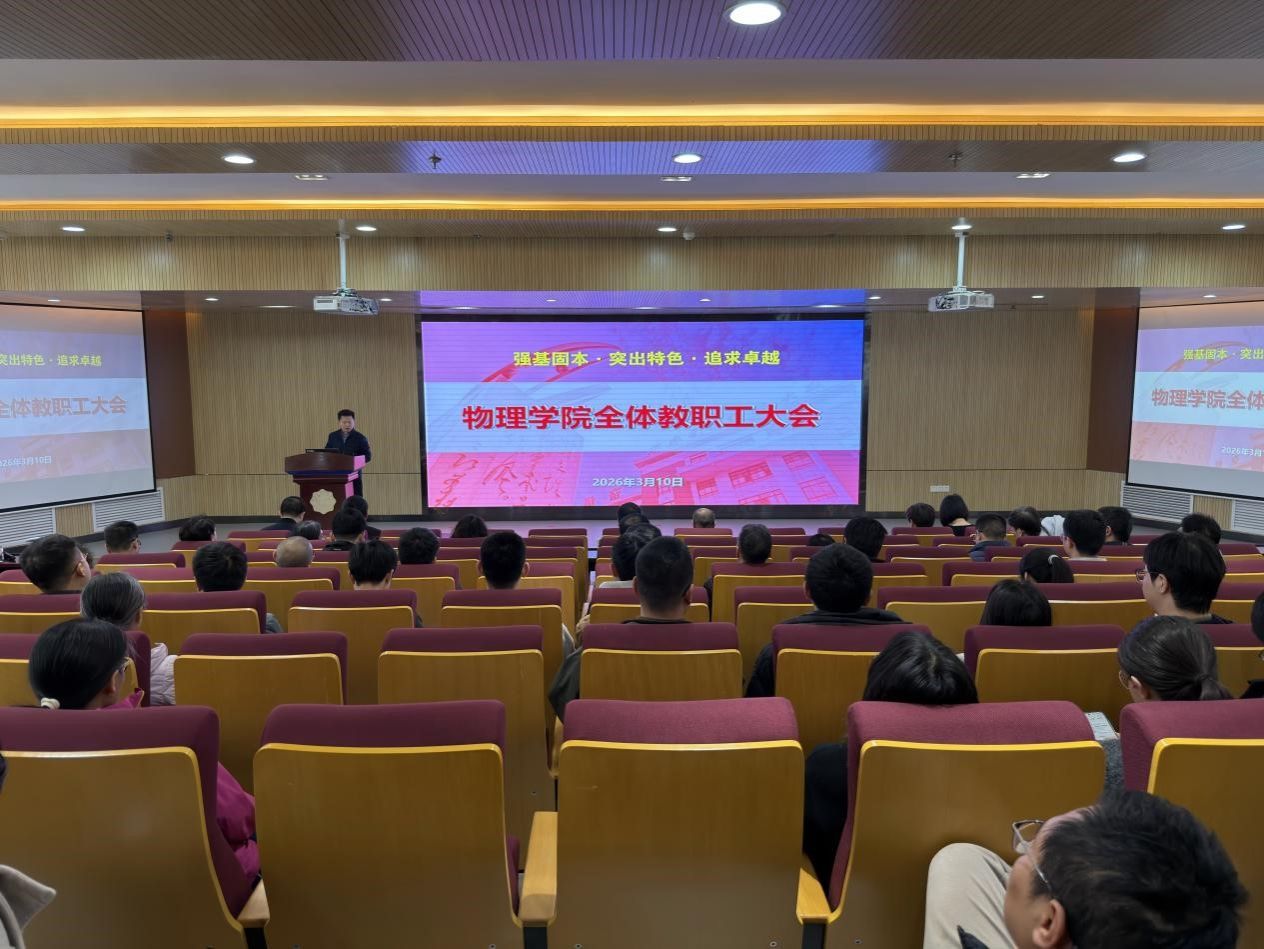 教职工大会上,黄军荣传达了公司2026年工作会议精神,回顾了公司2025年度工作,结合新形势与新要求,聚焦公司16项重点任务作2026年工作部署解读,确保“十五五”开好局、起好步,奋力书写教育强国建设的西电新篇章。经理郭立新作公司2025年工作回顾及2026年重点工作任务部署。2025年度在大家的努力下公司取得一定成绩,希望未来以更加积极饱满的状态投入到教育和科研的事业中,并深刻剖析了公司目前存在的问题,进一步明确了“一体两翼三服务”的工作思路,聚焦11项重点工作任务,齐心协力将西电tyc522cc太阳成集团建设成为国内工科院校中物理发展标杆之一。