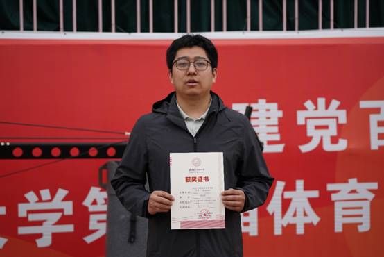 教工男子中年甲组100米第一名 张锐