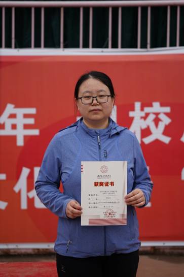 教工女子青年组一分钟单脚踢毽子第二名 廖家莉
