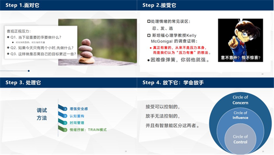 首先,丁兰艳老师从专业的角度解读了压力,详细介绍了压力产生之后常见的身体和心理发出的信号,有助于我们正确、快速的识别和判断。