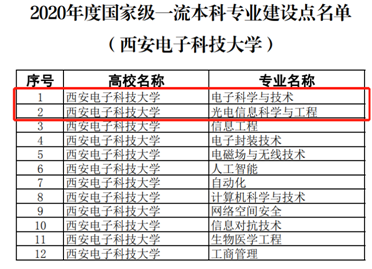 近日,教育部发布了《教育部办公厅关于公布2020年度国家级和省级一流本科专业建设点名单的通知》,公司电子科学与技术专业、光电信息科学与工程专业入选2020年度国家级一流本科专业建设点,应用物理学专业、电波传播与天线专业入选2020年度省级一流本科专业建设点。截止目前,公司已有三个专业获批了国家级一流专业(电子科学与技术专业、光电信息科学与工程专业、电子信息科学与技术专业),两个专业获批了省级一流专业(应用物理学专业、电波传播与天线专业),实现了国家级、省级一流专业全覆盖。