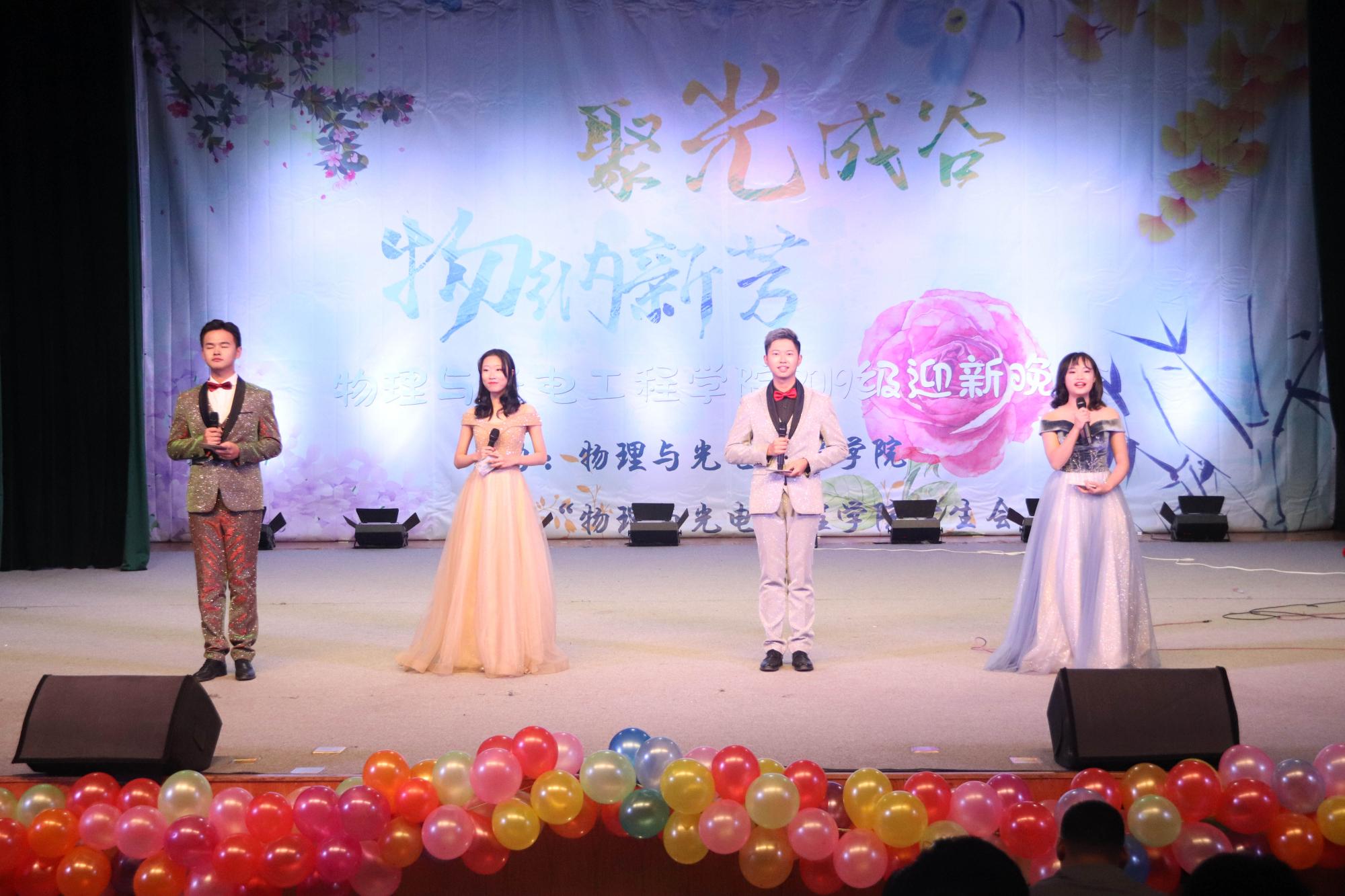 (通讯员:曹欣怡 刘超)11月10晚六时,物理与光电工程公司“聚光成谷,物纳新芳”2019级迎新晚会在南校区老员工活动中心小剧场举行。公司党委书记独国社、执行经理邵晓鹏、组织员陈峰、党委副书记林波、副经理辛红、各年级辅导员、专任教师以及全体2019级本科生欢聚一堂,共同欣赏这场视听盛宴。
