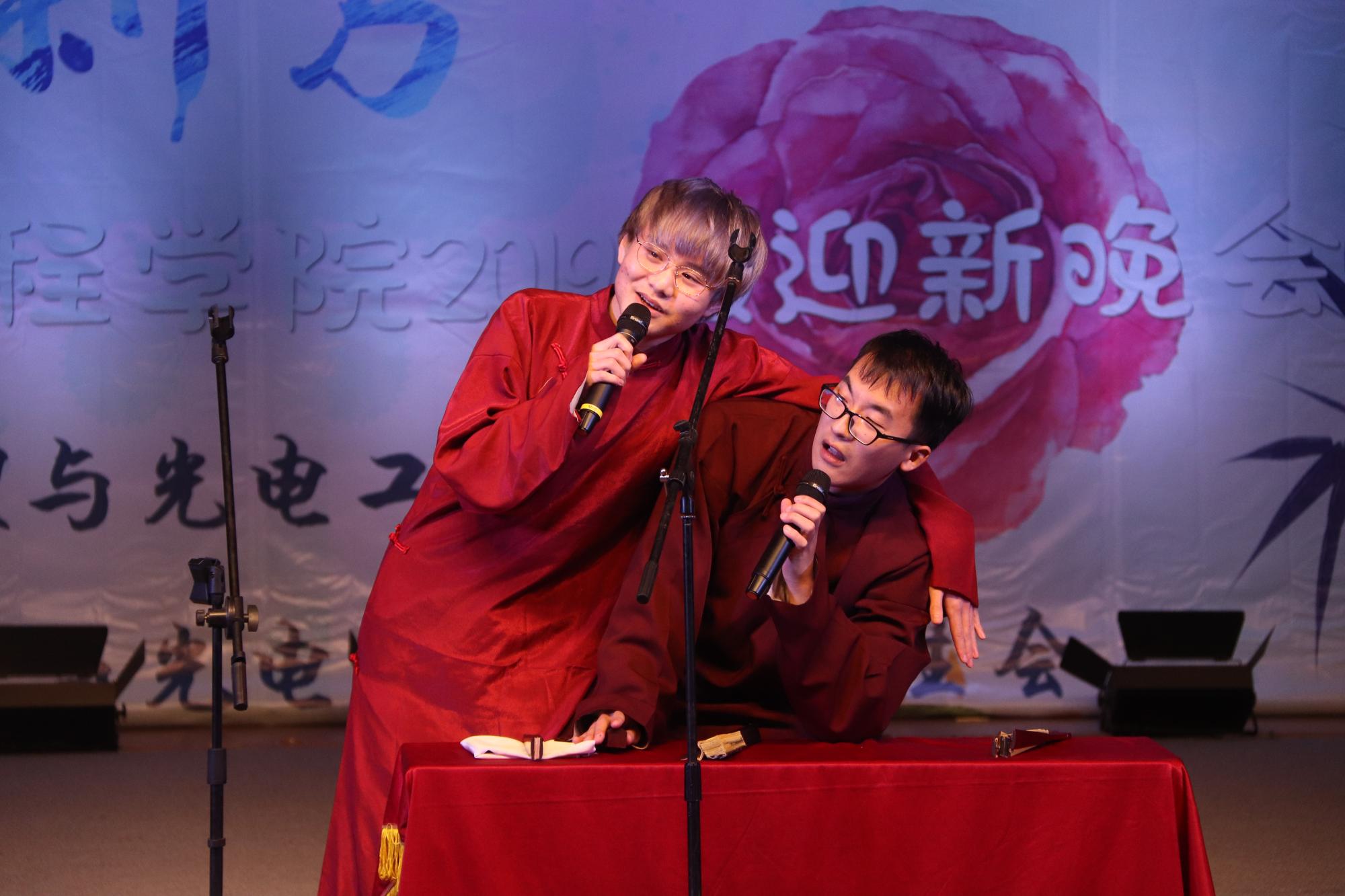紧接着,郑浩楠同学一首《光年之外》将观众们带入晚会的欢乐气氛;员工会文艺部为同学们带来了原创光影剧《光影少年》,用肢体与光影的绝妙配合展现了新学期专属于新生的西电记忆:从独自踏上火车的紧张、告别时的泪水、初到校园的激动以及认识新朋友的欣喜等;口琴和手风琴合奏的《未闻花名》轻柔舒缓,令人沉醉;辅导员王晨辉、韩金虎现场抽取了幸运观众并为新生送上了祝福,希望同学们在美丽的tyc522cc太阳成集团能够不负韶华、学有所成;抽奖环节过后,晚会继续进行。介四相声社带来的相声《我要招新》令现场观众捧腹大笑,欢笑声不绝于耳;B-force街舞社带来的舞蹈《快乐黑怕》,用明快的节奏带我们领略了协调的美感与团队的力量;新生同学展现了自己的风采,带来的歌曲串烧娓娓动听。在此之后又到了紧张刺激的游戏环节,在场观众自发上台参与游戏《谁是卧底》,大家斗智斗勇、绞尽脑汁,参与互动的同学们均领取到了精致的小礼品。