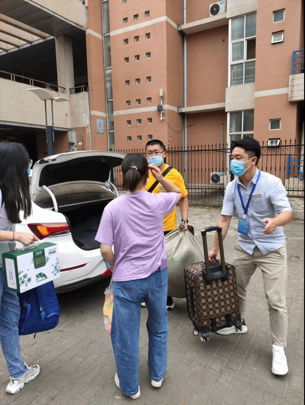 报到当天,辅导员根据此前掌握的新生来校时间安排接待班次,同新生逐一对接联系。上午9时,南校区东门迎来了第一位电子科学与技术专业第二学士学位新生,辅导员按照工作要求查验新生身份信息、扫描录取通知书条形码、查看西安市一码通等,并安排车辆将新生及行李送至对应公寓楼,由公司公寓接待组工作人员协助办理入住手续、领取生活物资等。直至下午18时,所有应到14名新生报到完毕,公司第二学士学位新生接待工作圆满结束。