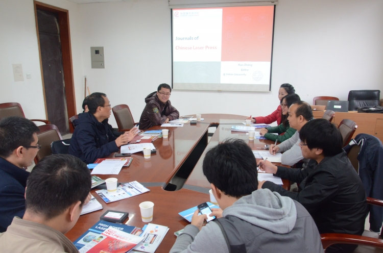 座谈会上,邵晓鹏对中国激光杂志社一行的到来表示热烈欢迎,对公司在光学领域的研究进展做了简单介绍,回顾了近些年公司在科研工作中与《中国激光》等期刊的交往,并表示从杂志社历年发表的优秀论文中受益良多,对中国激光杂志社对公司教师的关注和支持表示感谢。马沂对一直以来支持杂志社工作开展的老师表示了感谢,希望通过更深入的交流,加强相互了解,促进双方工作的进步。杂志社英文编辑部编辑张然还简要介绍了中国激光杂志社期刊及工作进展。随后参会双方就杂志社为光学科研提供优质的信息和情报服务、公司教师期望杂志社搭建平台和交流机会等方面进行了交流与分享。