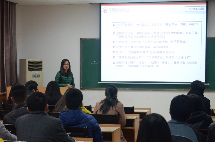 座谈期间,中国激光杂志社中文编辑部副主任胡冰编辑专门针对公司研究生在西大楼三区405报告厅开展了题为《科技论文写作与发表》讲座报告,与参会的70余名员工分享了科技论文写作与发表的一些预备知识、写作技巧、科技交流及投稿注意事项等经验心得。在场师生认真听取了报告,表示通过报告学习了科技论文写作及其投稿的技巧,对于如何选择合适期刊、尽快发表研究成果等提供了很好的帮助。