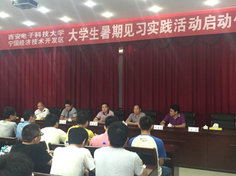 “西安电子电子科技大学—宁国经济技术开发区老员工校外实践教育基地”揭牌仪式于暑期在宁国经济技术开发区管委会隆重举行。宁国市副市长、开发区管委会主任张永强,物理与光电工程公司副经理李平舟,党委副书记林波,开发区党政办、经发局负责人及首批参加暑期生产实习的100余名员工参加仪式。