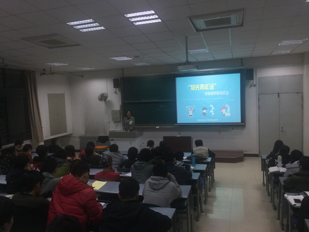 (通讯员:马忠林)11月15日晚,物理与光电工程公司“物光青年说”学涯指导讲座在B楼502室举行。公司17级物光院大一新生参与了本次活动。本次讲座由研一员工王湾、杜晓宇和大四员工张乾主讲,17级辅导员田宪主持,田宪介绍了几位报告员工的个人情况并建议大家结合自己的最近的学习生活情况带着问题去听去思考。