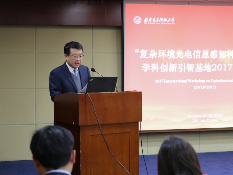 随后,基地负责人、物理与光电工程公司执行经理郭立新教授上台致辞。他首先代表基地工作组的全体成员对公司的大力支持、学者的辛勤付出表示感谢。他谈到,“复杂环境光电信息感知科学与技术”学科创新引智基地面向国家光电工程领域重大战略需求,依托智能感知与图像处理、新型激光器件与光信息处理、无线电物理三个省部级实验室建立,致力于解决未来复杂环境光电信息感知与处理中的关键科学问题。通过采用“引进、吸收消化、再创新”的战略思路,引进海外著名学者和高层次的研究人员,培养国际化的高层次人才和创新团队,深入开展高水平的国际科研交流与合作,力争打造一个在国内具有示范性的战略性、国际化的光电信息感知与处理领域的科学研究、高层次人才培养和国际学术交流的合作创新基地。他希望通过学术年会这一交流平台,深入研讨,增进友谊,共谋发展,将“复杂环境光电信息感知科学与技术”学科创新引智基地打造成为光电信息感知与处理领域内具有国际影响力的学术交流平台。