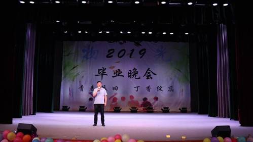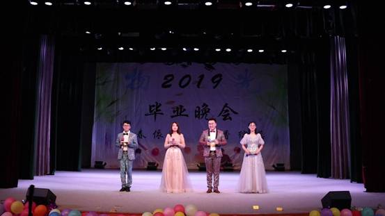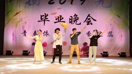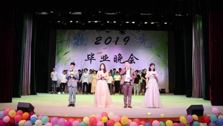 时间飞逝,晚会接近尾声,最后一个节目是由大四毕业生带来的串烧,节目以“不说再见”作为最后一首歌,主持人在歌曲的旋律中来到舞台,宣布2019届毕业晚会圆满结束。