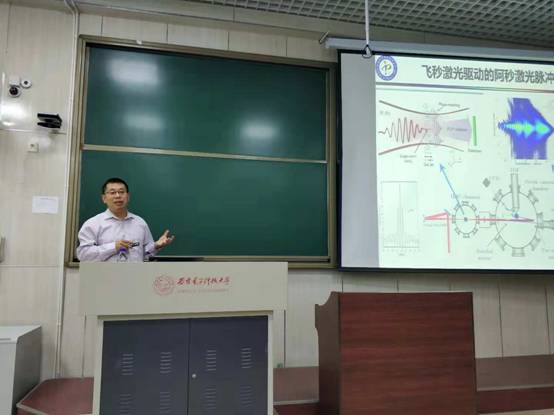 本年度诺贝尔物理学奖授予激光物理与技术研究领域,分别是光镊技术和超强超快激光技术。魏老师从超强超快激光技术谈起,以幽默风趣的语言,循序渐进地解读了啁啾脉冲放大技术以及与这项技术密切相关的飞秒和阿秒激光技术。此外,魏老师还介绍了超强超快激光在前沿科学和工业、医学等领域的重要应用。在魏老师的带领下,超强超快激光揭开了她神秘的面纱,同学们也意识到超强超快激光活跃在各个领域,与我们的生活息息相关。