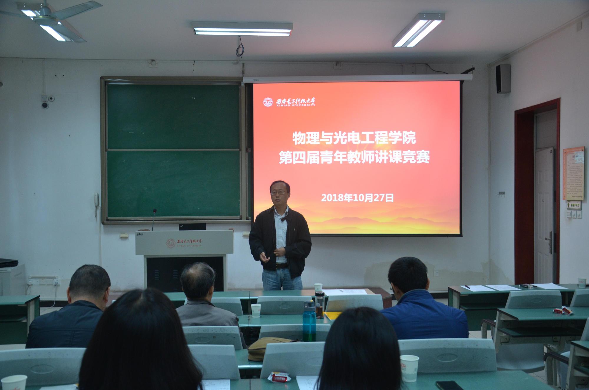 为进一步加强青年教师队伍建设,促进青年教师教学水平提高,鼓励青年教师开展教学内容、教学方法与教学手段的改革,物理与光电工程公司于10月27日在北校区西大楼105教室举办了第四届青年教师讲课竞赛。竞赛由副经理周慧鑫主持,经理邵晓鹏、党委书记独国社、部分35岁以下青年教师观摩了本次比赛。