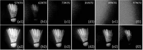 图3部分成像结果随水体浑浊度的变化情况,上:传统成像;下:偏振成像