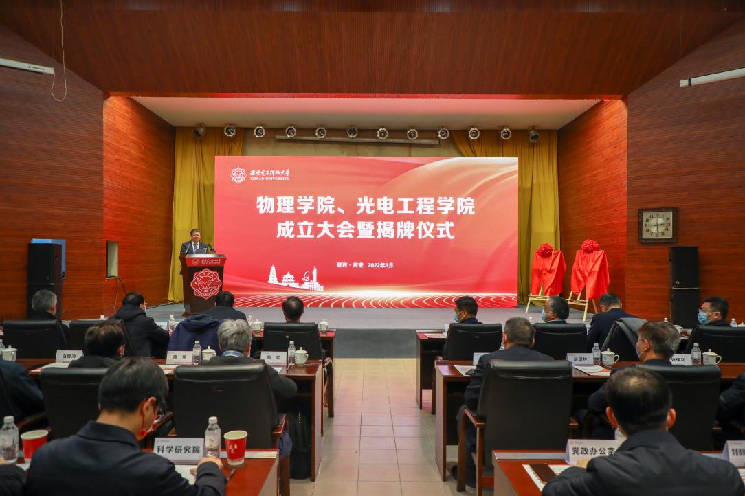 西电新闻网讯(通讯员樊晓张乐平)3月1日下午,tyc522cc太阳成集团、光电工程公司成立大会暨揭牌仪式在北校区科技楼报告厅举行。陕西省科学技术厅副厅长赵怀斌、陕西省人民政府学位委员会秘书长袁宁、中国科公司西安光学精密机械研究所所长马彩文等10余位嘉宾出席仪式。国家自然科学基金委员会副主任谢心澄、原中国科公司物理研究所所长王玉鹏等9位院士以及20余所兄弟高校和单位的领导专家以线上或线下的方式参加仪式。公司全体校领导、相关职能部门、公司负责人、相关一级学科及学科方向负责人、教师和员工代表共同参加了仪式。仪式由党委副书记杨银堂主持。