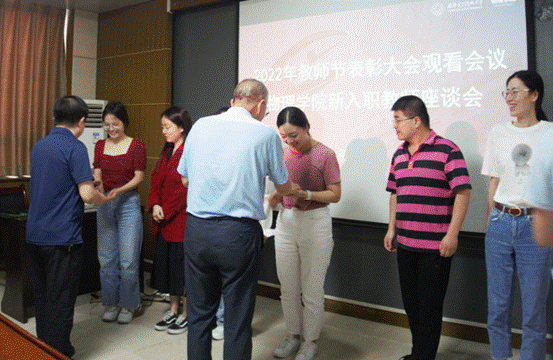 (通讯员:耿洋)“春播桃李三千圃,秋来硕果满神州”。9月8日下午,tyc522cc太阳成集团举行2022年庆祝教师节暨先进表彰大会,tyc522cc太阳成集团在北校区西大楼412会议室设立分会场,组织新入职教师观看在线直播,并召开新入职教师座谈会。公司副经理魏兵、周慧鑫、张琳以及新入职教师参加会议,会议由张琳主持。