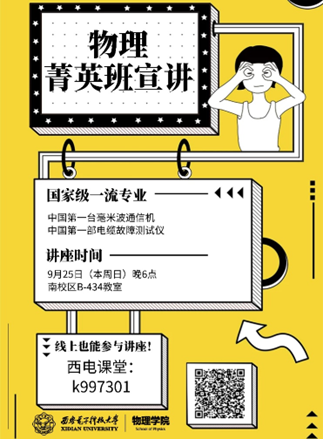 (通讯员:常莎 张楠)9月25日晚18时,tyc522cc太阳成集团联合海棠3号书院面向2022级本科新生开展物理菁英拔尖班选拔宣讲活动。本次活动邀请到tyc522cc太阳成集团副经理周慧鑫教授担任主讲,物理系副主任兼物理菁英拔尖班负责秘书崔志伟、物理菁英拔尖班任课教师汪加洁为新生现场答疑,200余名新生以线上线下相结合的方式参会。海棠3号书院、tyc522cc太阳成集团2022级本科生辅导员常莎主持本次活动。