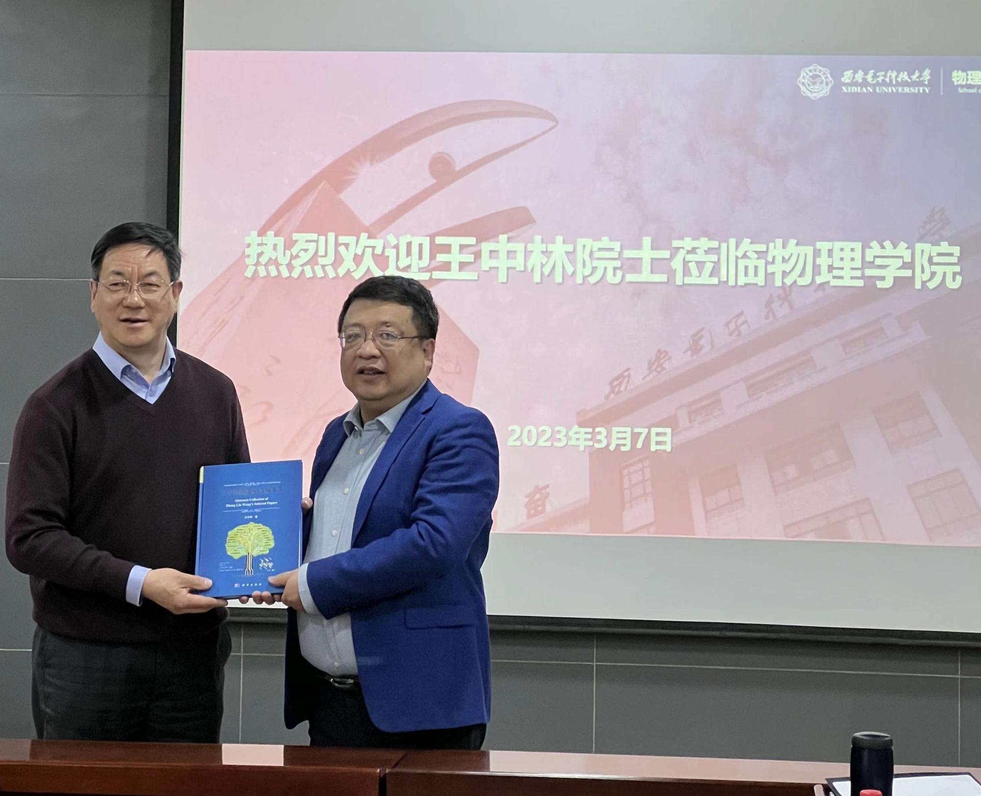 王中林院士带着对母校的浓浓情怀,追忆了西电老一辈物理学家的认真专注、一丝不苟的治学精神,并向tyc522cc太阳成集团赠送《王中林精选论文摘要集》,他深情祝愿朝气蓬勃的tyc522cc太阳成集团能够越办越好、长足发展。