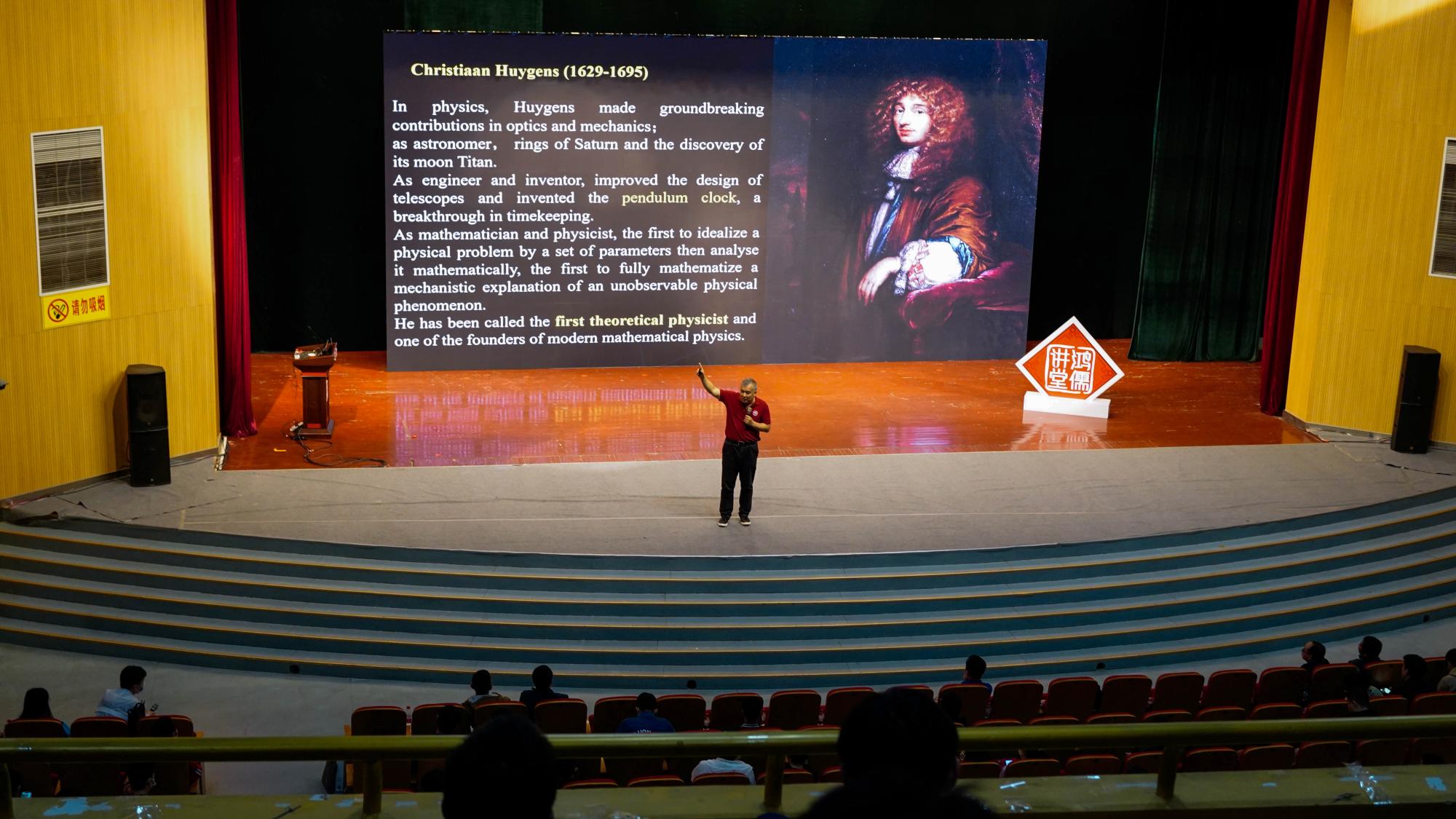 报告会上,曹则贤以惠更斯、洛伦兹、塞曼等大家耳熟能详的物理学家为例,介绍了在荷兰莱顿小镇上诞生的物理学传奇及其背后的故事,让在座师生既感受到了科学的奇妙之处,也明白了浓厚的科学氛围及底蕴对科技创新的重要性;随后,他还展示了艺术家埃舍尔将科学知识融入艺术创作所产生的优秀成果,讲述了科学与艺术在想象力、探索力和创造力培养方面的共性。曹则贤谈到,荷兰的科学和艺术有着深厚的底蕴,一大批惠更斯、洛伦兹这样的科学家奠定了它深厚的科学基础,梵高、维梅尔这样的艺术家为荷兰带来了艺术家独有的创新创造的“使命感”,基于这样的基础,才造就了荷兰今天在光刻机领域的领先。荷兰的经验也让我们清楚地意识到,卡脖子技术的突破,需要同学们主动学习、深入思考,打牢基础,以基础学科的突破引领技术的发展。“以前我们的科技在追、在模仿,现在需要大家在自己的领域走到科学前沿、引领世界发展。”