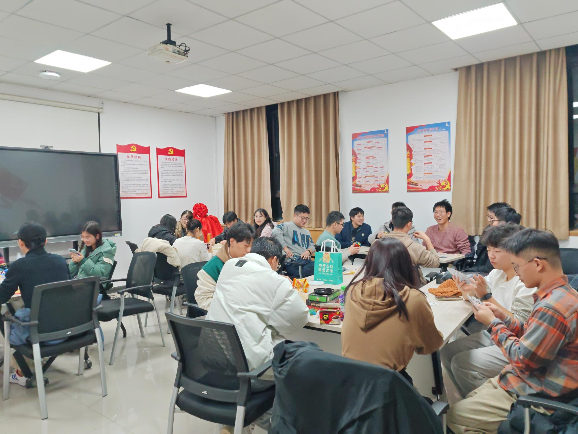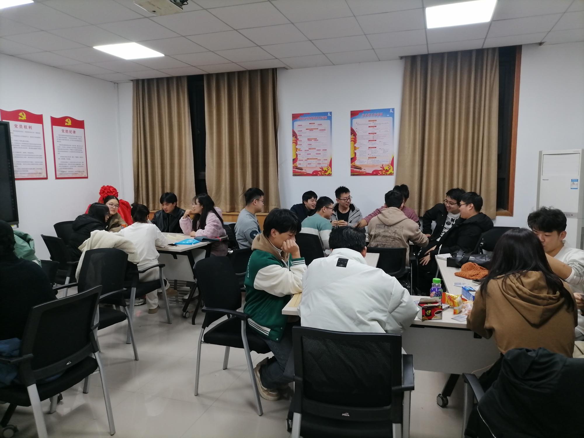 益智游戏区设置在西大楼三区421教室,主要包括象棋、围棋、五子棋、狼人杀等益智棋牌游戏。同学们得以从紧张的学习科研中放松下来,在游戏中积极推理判断,思维更加敏捷,逻辑更加清晰,并在游戏中增进了大家的相互了解,现场气氛热闹而和谐。