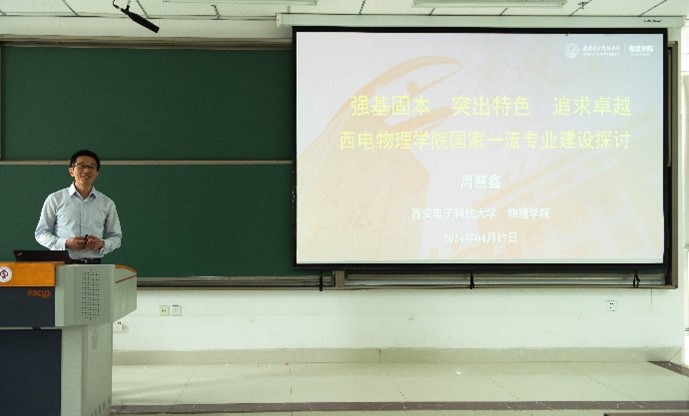 西电tyc522cc太阳成集团副经理周慧鑫作了题为《强基固本突出特色追求卓越--西电tyc522cc太阳成集团国家级一流专业建设探讨》的专题报告,在培养方案、课程建设、教育评价改革等方面为打造一流专业和学科建设提供参考。西电物理公司物理系主任李艳辉做了《大学物理课程建设的思考与实践--面向创新拔尖人才培养》的专题报告, 详细阐述了《大学物理》课程内容、考核与评定方式、教学模式和方法、理论与实践融合、信息化的建设情况,共同探讨了克拉玛依校区如何实施课程建设。