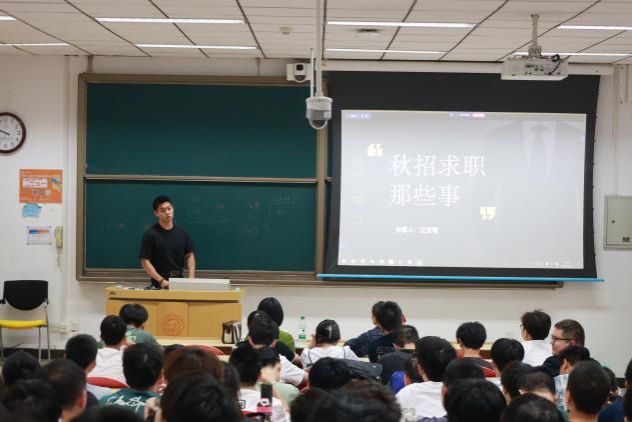 2021级毕业生江文宵作为求职毕业生代表,为全体毕业生作了主题为“秋招求职那些事”的求职经验分享。江文宵以自身的求职经历为例,从如何获取招聘信息、如何制作一份优秀的简历以及如何准备笔试和面试等方面进行心得分享,强调求职不是一蹴而就的,毕业生必须掌握调节心态和总结经验的能力,并时刻保持自信,以积极的状态准备迎战。
