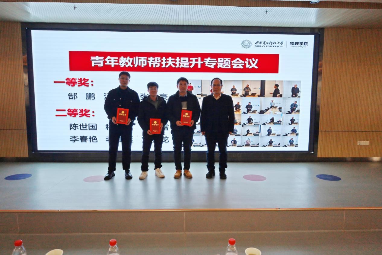 会上还举行了2024年度青年教师帮扶提升工程颁奖仪式,张进成为一等奖获得者郜鹏、汪加洁、张廷豪颁奖,黄军荣、郭立新为二等奖获得者陈世国、程明建、董春雷、李春艳、李江挺、刘骄龙颁奖。