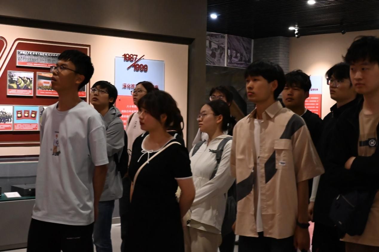 参观的同学们驻足在一件件珍贵的历史文物前,透过斑驳的校牌、泛黄的手稿、老旧的装备,触摸到大学的发展历程。