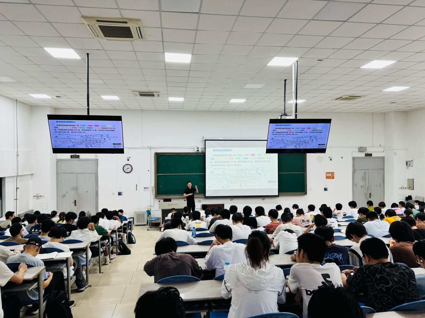 王向首先以西安地铁建设为切入点,系统介绍了西安轨道交通的发展现状与创新成果。他重点讲解了无人驾驶地铁8号线,通过全自动控制、智能调度等核心技术,展现了我国轨道交通领域的科技实力。从人工操作到无人驾驶,技术革新不仅提升了效率,更体现了劳动精神与科技创新的深度融合。王向强调,这一突破背后是无数技术人员的智慧与汗水,激励同学们将专业知识与实践相结合,投身国家科技事业。