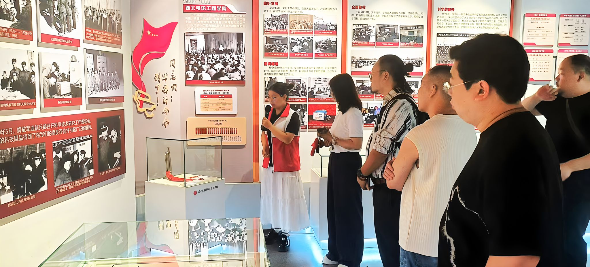 排练开始前,西安话剧院专业指导团队和全体演职人员在2023级本科生王茹同学的讲解中参观公司校史馆。漫步西电校史长廊,团队成员不仅深入了解西电红色革命发展历史,更触摸到一代代科学家、教育家们“功成不必在我,功成必定有我”的奋斗温度,为舞台剧的排练工作奠定了浓厚的情感基调和鲜明的西电底色。