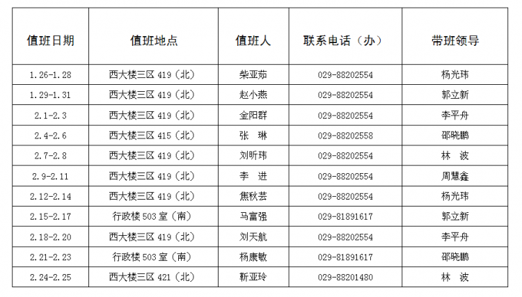 二、 假期值班安排