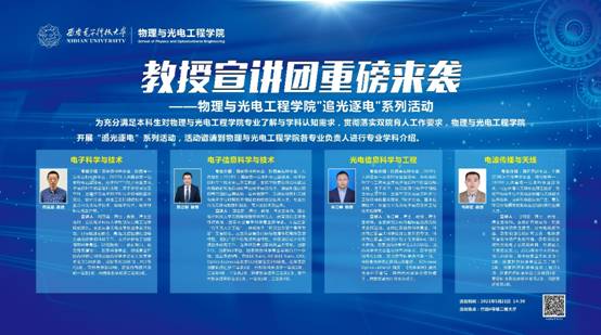 (通讯员:王纲 袁本柱 罗庆辉)为贯彻落实“双院育人”工作要求,充分满足本科生对公司专业了解与学科认知需求,物理与光电工程公司开展“追光逐电”系列专业介绍活动。5月21日,物理与光电工程公司各专业负责人组成教授宣讲团走进书院,面对面为电子信息大类新生及大三员工做学科专业推介。竹园3号书公司党委副书记穆宏浪、办公室主任王禛、2020级辅导员及员工等近百人参加了教授宣讲团活动。活动由物理与光电工程公司党委副书...