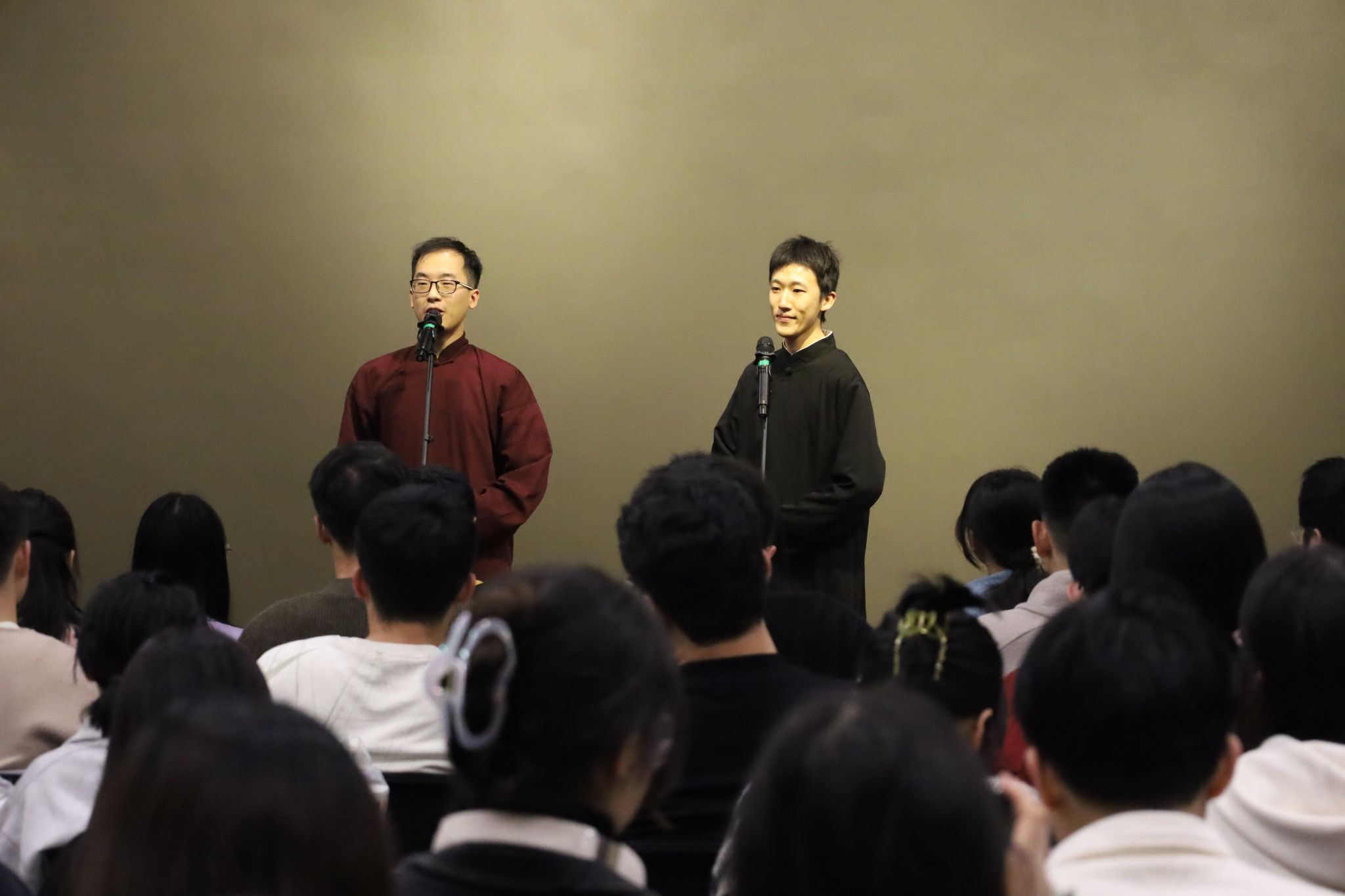 (通讯员 于天玮)把烦恼团成线团,用欢乐重新编织,如约而至的笑声驱散了不期而遇的秋思。10月26日,tyc522cc太阳成集团于北校区会议中心104成功举办“物忧物虑”喜剧专场演出。公司特邀tyc522cc太阳成集团介四相声社、西安交通大学博雅曲艺社、西安马上喜剧,为北校区师生带来了一个难忘的欢乐夜晚。演出现场起满座满、掌声笑声不断,共吸引250余名研究生师生前来观看。介四相声社、博雅曲艺社带来相声节目《我是歌王》《数来宝》。《我是歌王》...