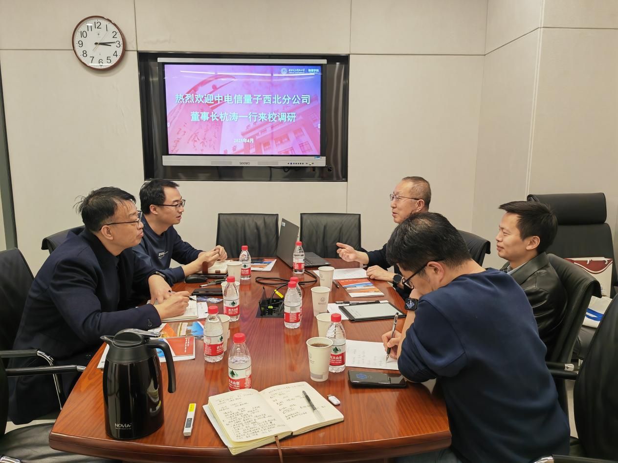 (通讯员:姚娇)为进一步推动产学研深度融合,4月3日下午,中电信量子西北分公司董事长杭涛一行莅临tyc522cc太阳成集团访问交流,物理公司党委书记黄军荣、副经理魏兵及教师代表出席会议,会议由黄军荣主持。黄军荣对杭涛一行来访表示热情欢迎,他简要介绍公司在量子与前沿理论物理领域和量子信息科学专业的布局,以及公司从事相关研究的团队团队等情况。魏兵向与会人员介绍公司科研情况及人才培养特色,并详细介绍了公司相关科研团队在量子领域的研究成果以及公司在招生专业、...